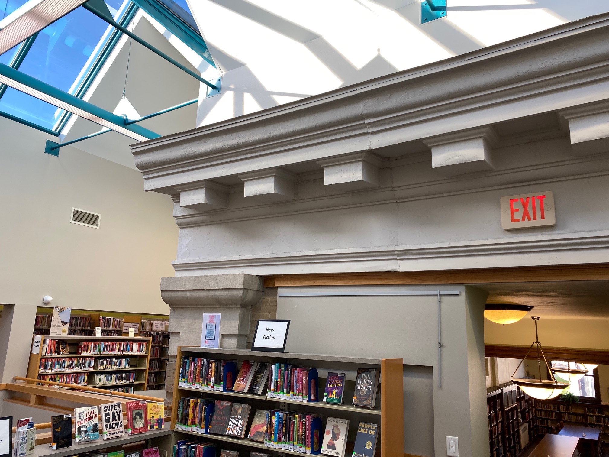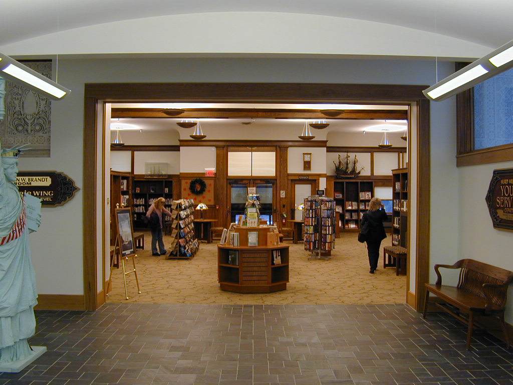 Stoughton Public Library is a Carnegie Library with an addition that goes over the roof of the original library, which can be seen inside.Stoughton Public Library is a Carnegie Library with an addition that goes over the roof of the original library, which can be seen inside.Stoughton Public Library is a Carnegie Library with an addition that goes over the roof of the original library, which can be seen inside.